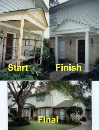 The door and facade is the first impression you get of a house. The house had a mixture of wood and stucco which was crumbling due to moisture. The house is 30 years old. We removed the entire top front of the house, applied plywood, and re-stuccoed. Then we applied a cultured stone. This particular one is a stackable. We got many compliments for the look.
