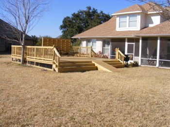 The customer moved into his new house. The first thing on his improvement list was to have a custom deck installed. KJM supplied that crafted work.