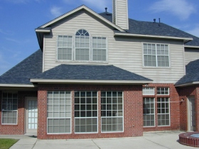 Project of a 1930 ranch house in Brenham, Texas with old shiplap pine siding and old brick venner wainscoat. We removed the existing brick and siding, installed new OSB 1/2 inch plywood throughout. We used a moisture barrier called Tyvek from Dupoint. We installed Pella windows and doors. We installed 4" Hardy siding giving it the look of the 1930's.