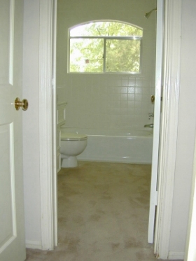 This is one of our latest completed bathrooms. The bathroom was dark and had low ceilings (see picure at left). We raised the ceiling, installed a 3 X 4 window, and removed and replaced the tub and tile. The customer came up with a good idea to add an arch to give it a unique look (see picture at right).
