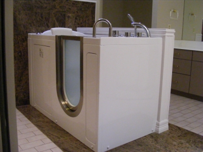 Installed a walk in tub for a customer that is handicapped with a wheelchair. Made it more accessible to get in and out. It also has other features such as a heater, air jets, and lighting.