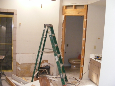 The customer wanted a more open look. It was crowded before with a closet attached to the shower area. We removed two walls, and that was really all it took to open it up.