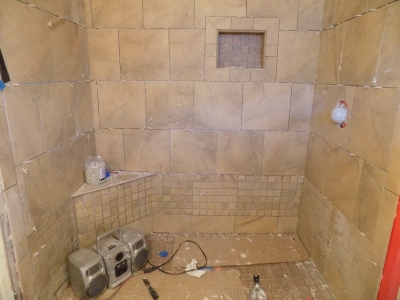 We also do small jobs. The following is an example of a tile splash job in progress.