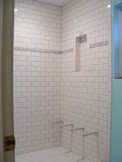 We remodeled the master bathroom in this 1980's house. We removed the tub, and enlarged the shower to a 4 X 6.