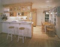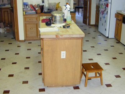 We are adding more cabinet space to the following kitchen for cooking and plastic container space. One area that will be changed is the island - we are attaching taller cabinets to it, making more drawers for the top burner areas and adding a decorative ornament (colbars) to each end. A photo of the completed projects will be shown soon.