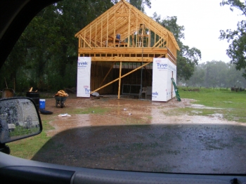 The customer purchased property and wanted to store his tractor and have a living quarters. KJM built the garage with a garage apartment above. Eventually the customer wants to attach the garage to the house.