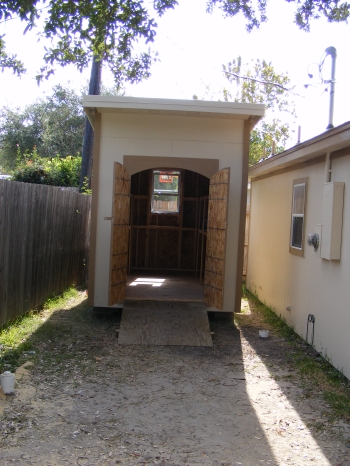 This customer wanted some more space in the garage, and was thinking of expanding the garage. We suggested that it would cost a lot less if we customized a storge shed for his needs. The size came out to be 8' Wide, 9' High, and 12' Long.